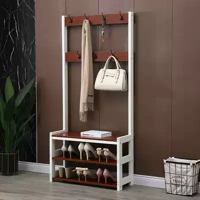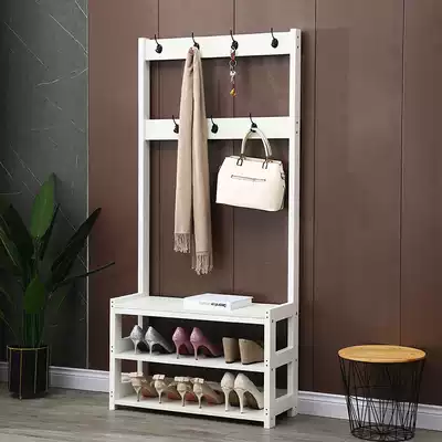 Coat rack ground-to-floor simple modern solid wood doorway shoe stool hanger integrated living room bedroom shoe hat rack combination
