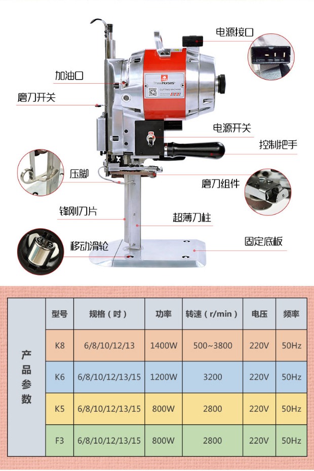 Three horses F3 cutting knife Cutting machine electric scissors Clothing cutting knife Cloth cutting knife 800 watts 10 to 12 inches