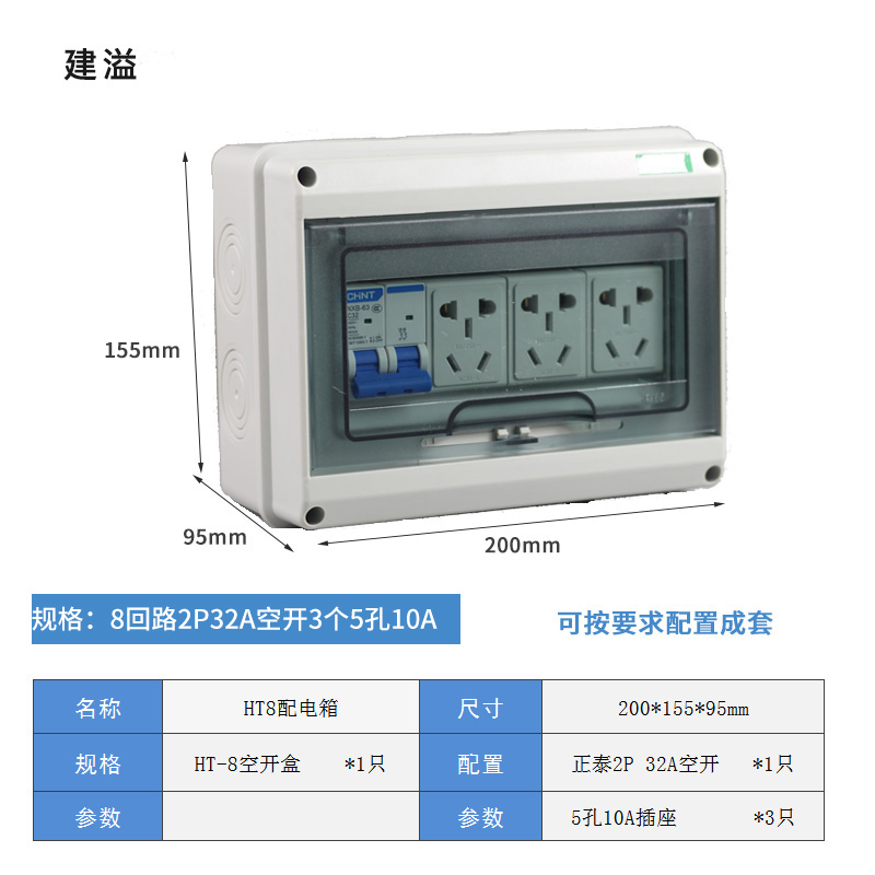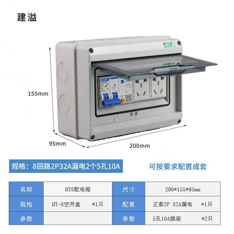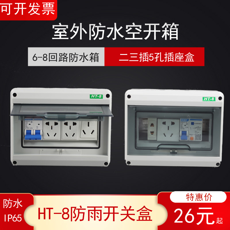 Outdoor electric box HT-8 loop waterproof distribution box 6 outdoor rain-proof and empty open socket box concealed for home charging