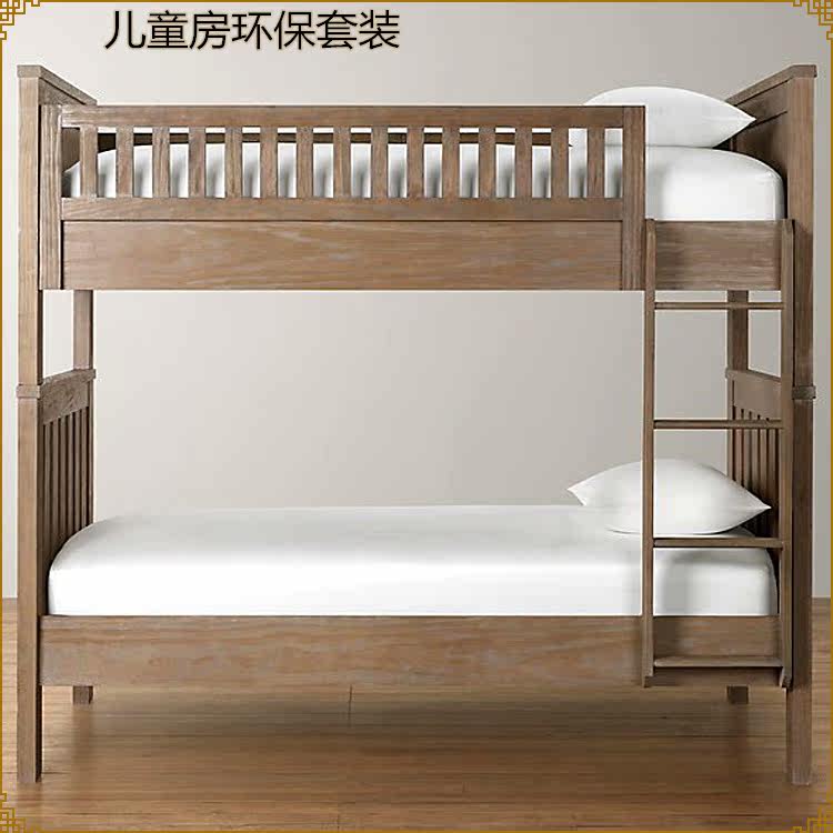 American pure solid wood oak do old bunk bed French antique high and low mother bed simple children's stairs up and down the bed