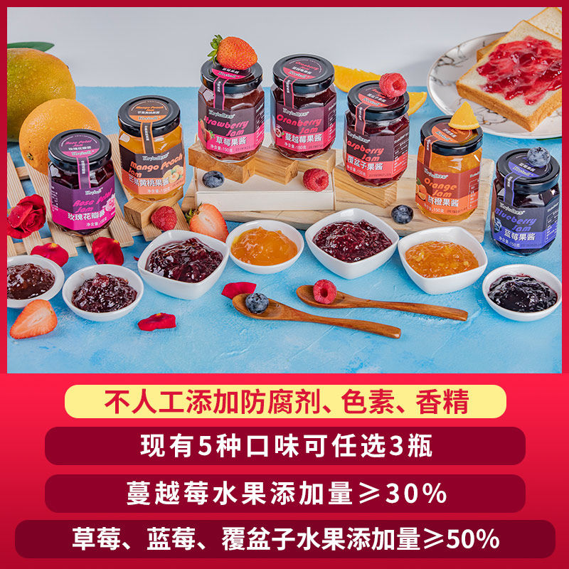 Jam 150g * 3 Blueberry Strawberry Cranberry Raspberry Navel Orange with Yogurt Bread Breakfast Sauce