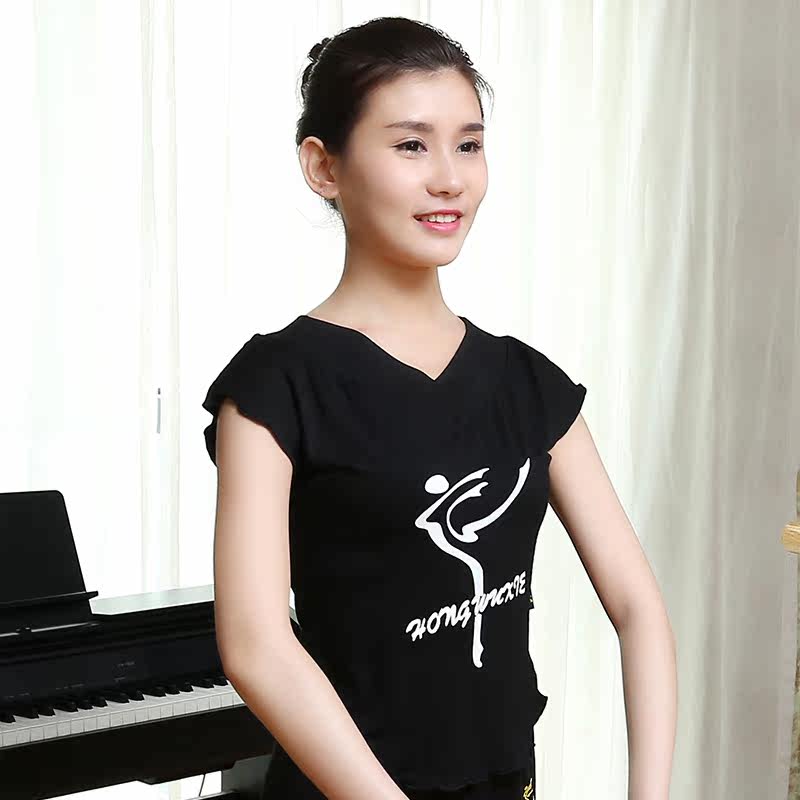 New red dance shoes V collar short sleeve blouses bodysuit and workout yoga jumps for women dance blouses