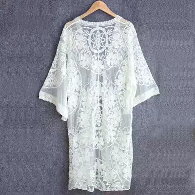 Lace mid-length cardigan shawl outer sunscreen clothing beach vacation hollow female bikini seaside blouse jacket