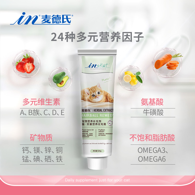 Mcdern Inkat Pet Cat Kitty Young Cat Nutrition Cream Wool Cream Cat Removal Hair Balm Hair Cream Constipation 120g