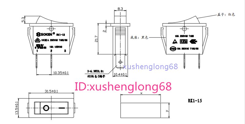 SOKEN Mastercard type rocker switch RK1-15 current 16A2 stalls 2 feet 15 * 32mm silver contact points