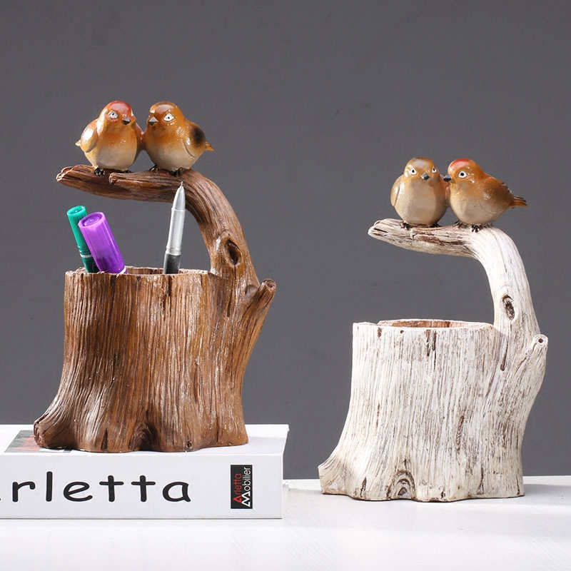 Creative Retro Little Bird Station Tree Stump Multi-Meat Plant Flower Pot pen holder Handicraft Swing Accessories Jewellery Racks American Countryside