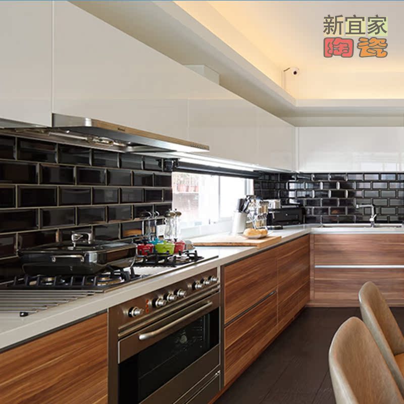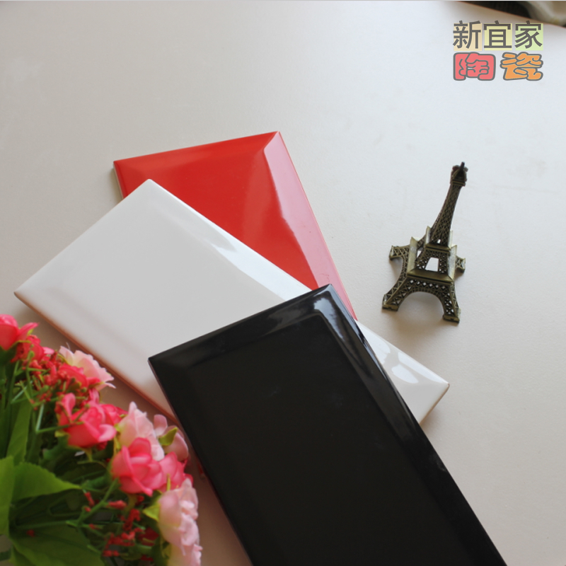 Big red beveled bread brick interior wall brick black matte bright porcelain tile white subway brick kitchen bathroom