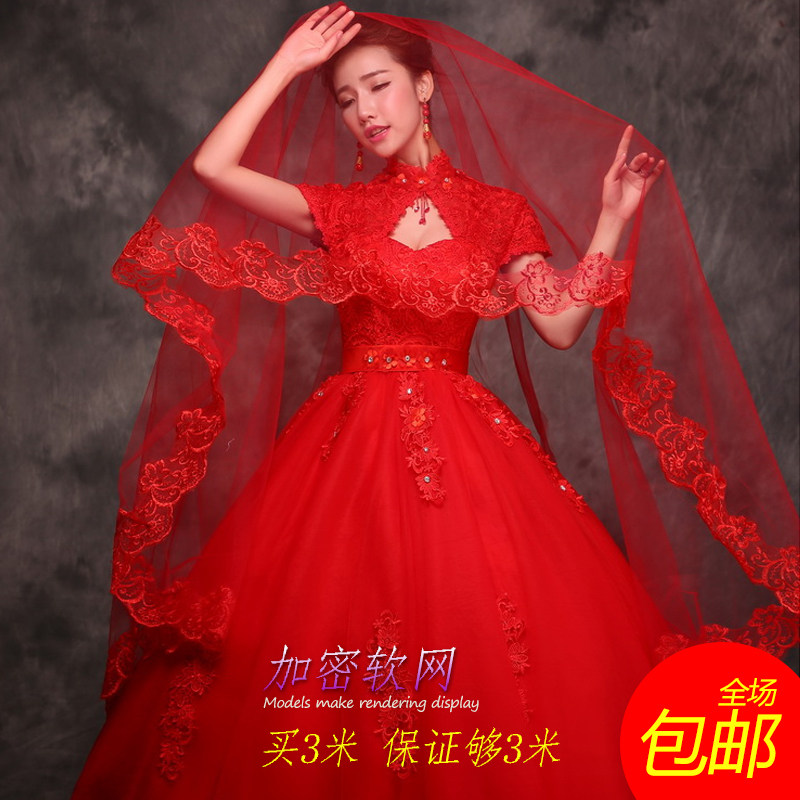 New Bridal Lace Lace Lace Head Yarn Monolayer Super Long Trailing Red White Head Yarn Wedding Dresses Accessories