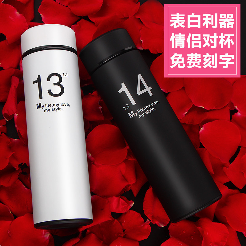 Couple cup creative thermos cup cute style with lid Korean trend water cup Korean version filter tea cup pair engraving