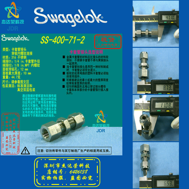 (SS-400-71-2)Swagelok Card Sleeve Pipe Plate Connector 14 in x 18 in.NPT