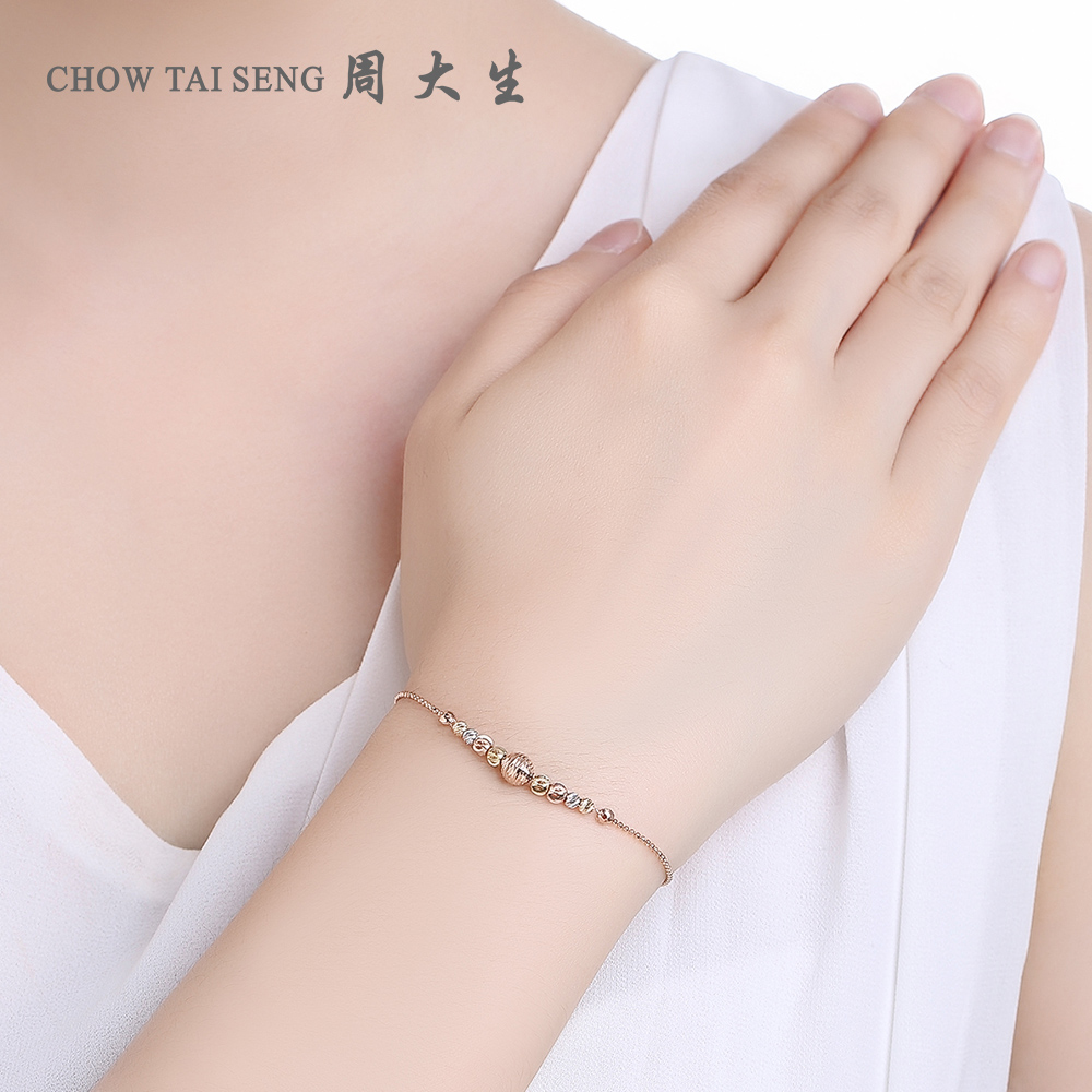 Zhou Dasheng Tricolor Ball 18K Gold Bracelet female fine rose gold handdress birthday present to girlfriend