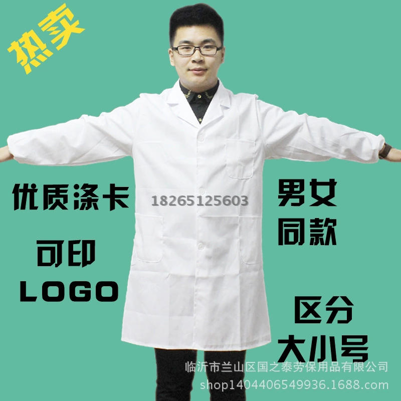 White coat Lab coat Student thickened polyester card long sleeve food factory director version chef suit White coat