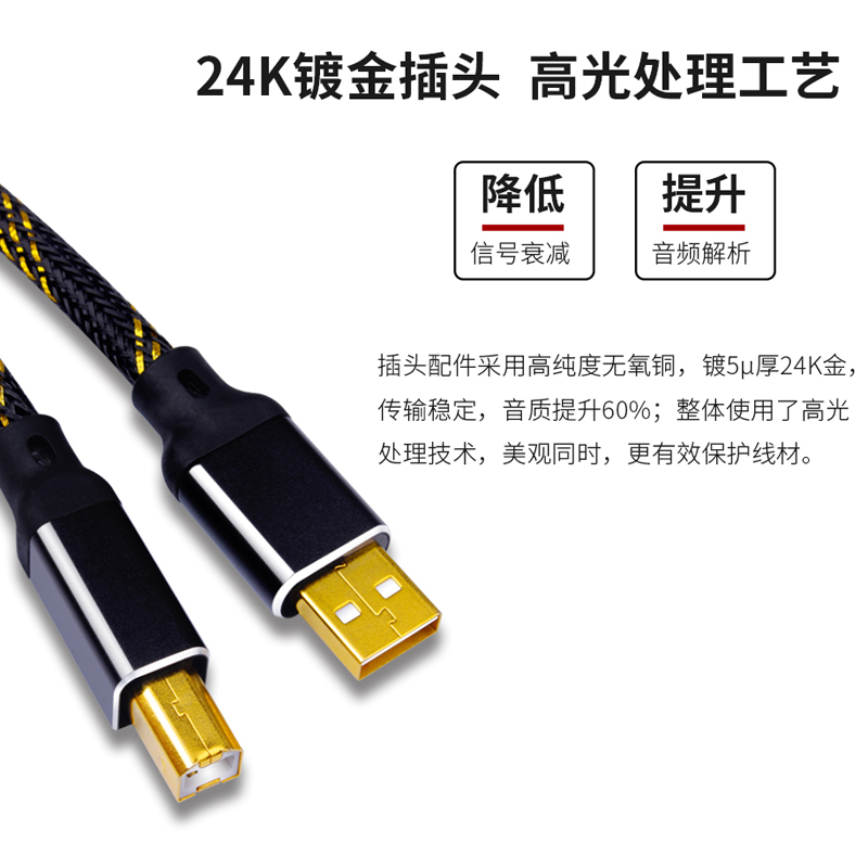 usb audio wire hair burning grade oxygen-free copper gilded USB decoder sound card line DAC square port a-b2 0 data line