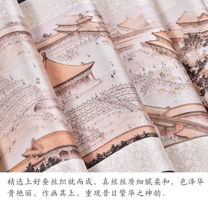 Panoramic view of the Forbidden City Silk painting Long Cirrus brocade silk painting scroll hanging painting Museum collection of cultural and creative souvenirs