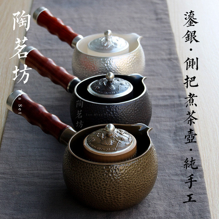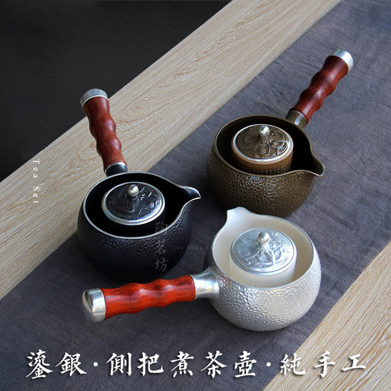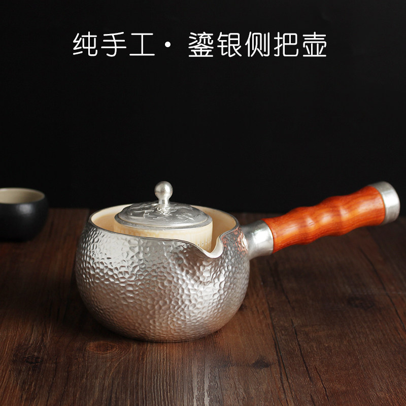 White Silver Ceramic Boiling Tea Ware Teapot Red Sandalwood Side Combine Dual-use Pot Kung Fu Tea With Black Crystal Stove Pu'er Black Tea Tea Maker