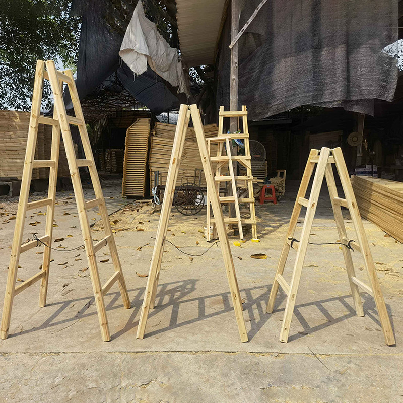 Wooden Ladder Double Side Human Character Ladder Solid Wood Electrician Home Furnishing Ladder Safety Engineering Kindergarten Light Folding Wooden Ladder