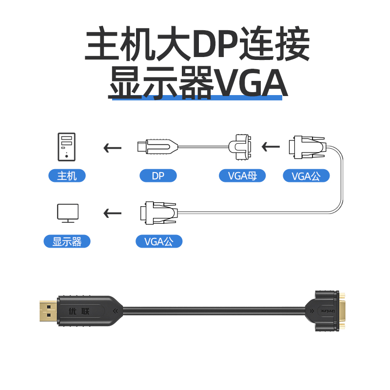 Ulian DP Turn VGA Converter Computer Display Card Large DP Turn VGA Interface Display High Definition Conversion Line Adapter