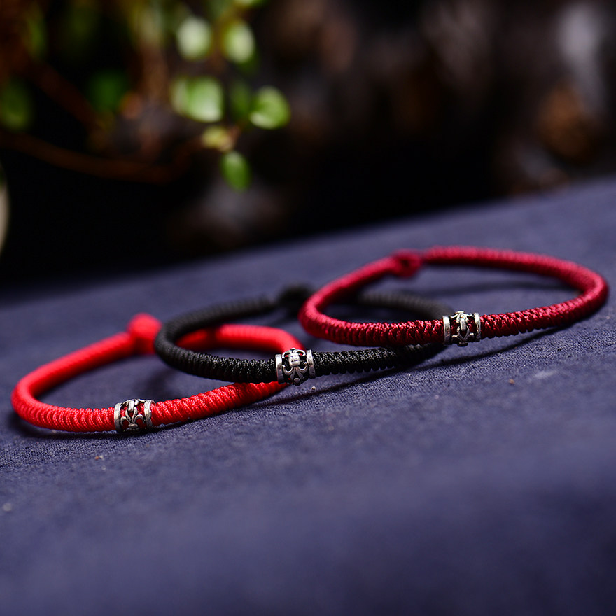 925 silver forwarding beads lovers Girlfriends Bracelet Hand-woven Thai Silver Ben Life's Diamond Knot Red Rope Hand Condensed