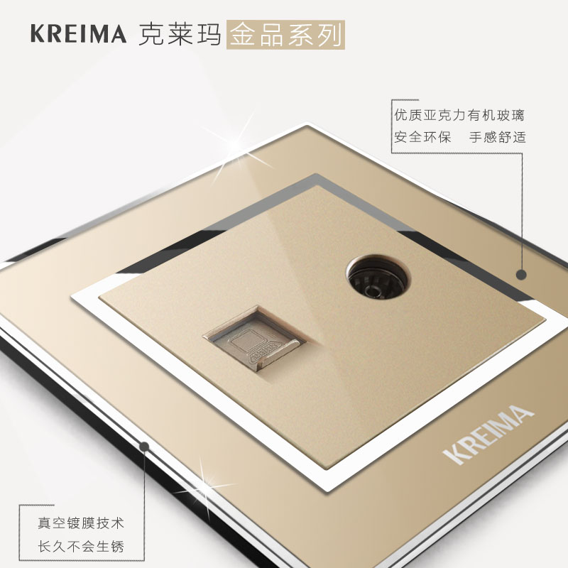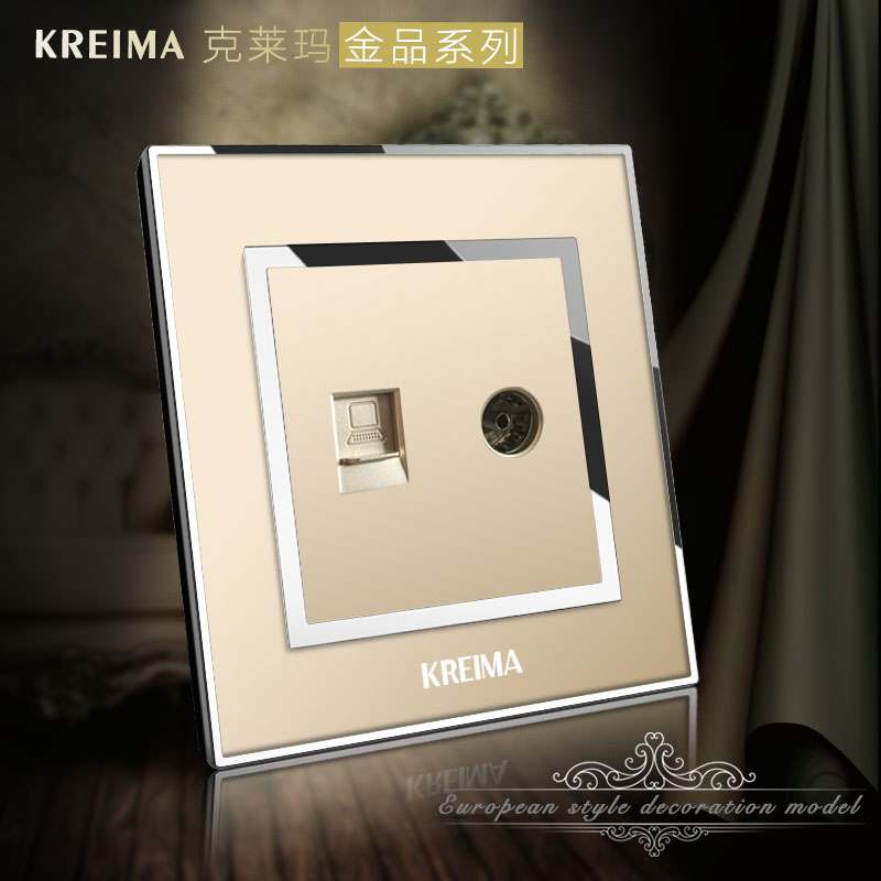 Clema Crystal Glass Champagne Golden Computer TV Socket Internet Cable Broadband Internet TV Panel