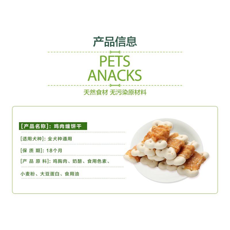 Chicken wrapped in biscuits (more balanced nutrition, teeth grinding to remove bad breath)