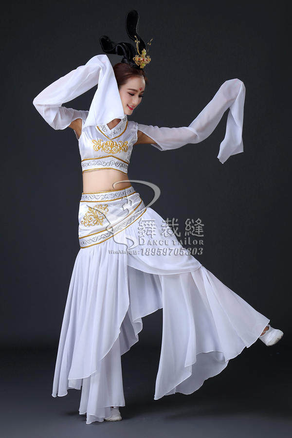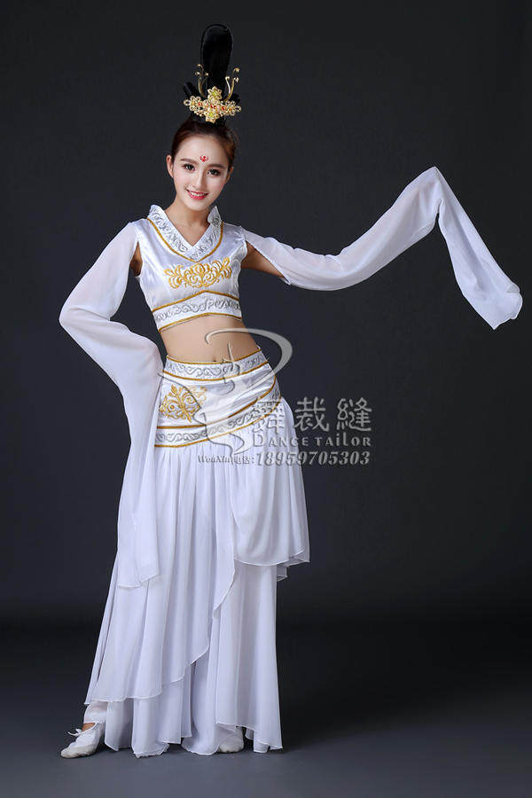 New jade man dance classical dance performance Costume White Water Cuff Dance Suit Chang'e Moon Dance Costumes Fairy