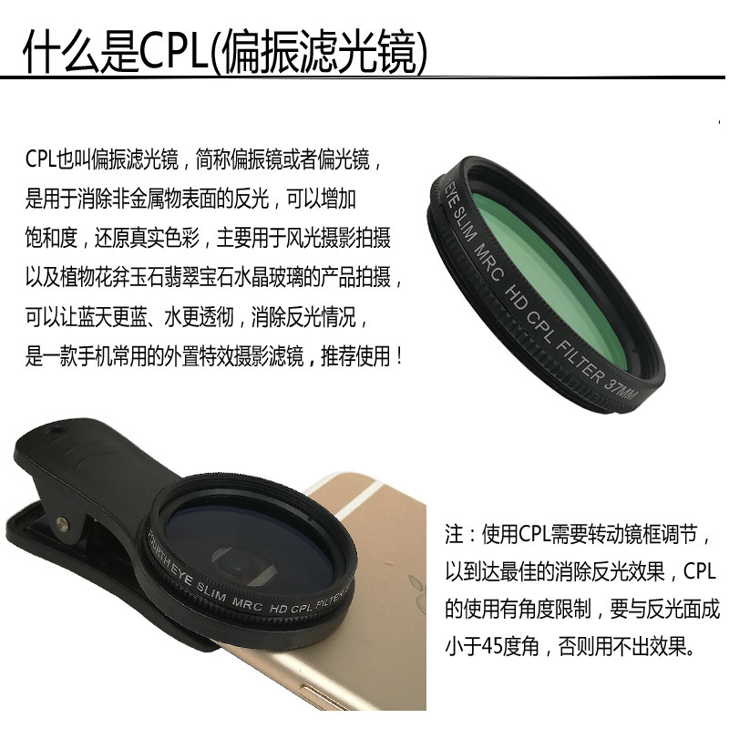 37mm Cell Phone Polarized Lens MCCPL Filter Monocular Special Effects Suit 52mm Apple Android Universal Polaroid Mirror