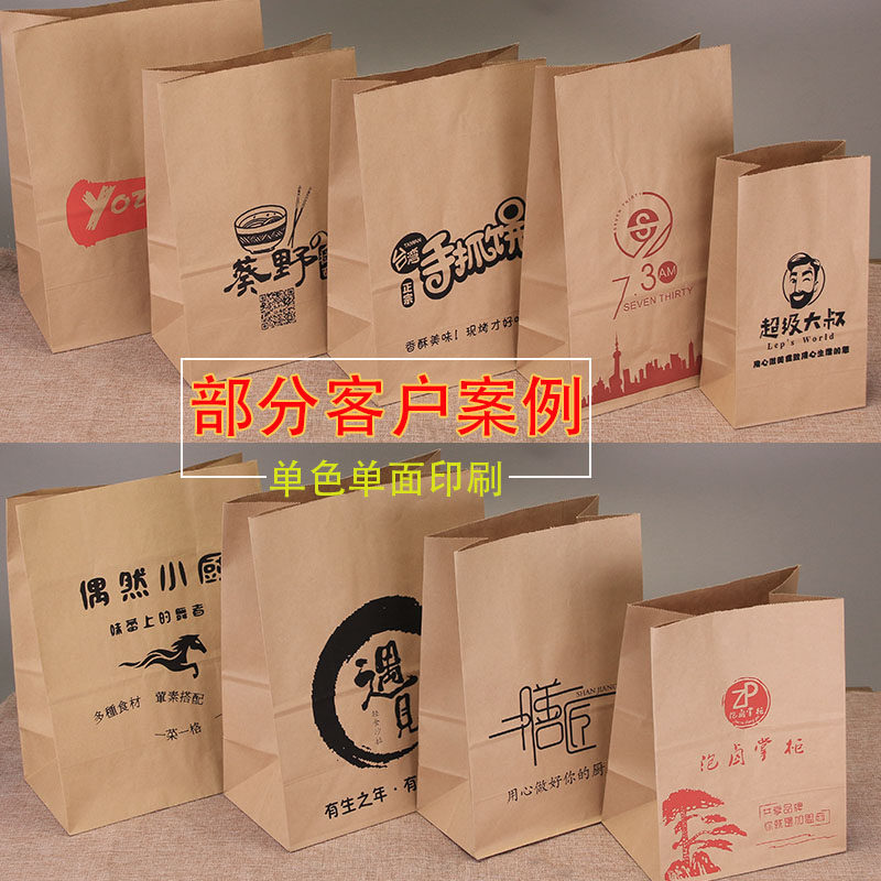 Thickened Kraft Paper Bag Food Bag Greaseproof Disposable Bread Burger Upscale Takeaway Package Bag Customizable