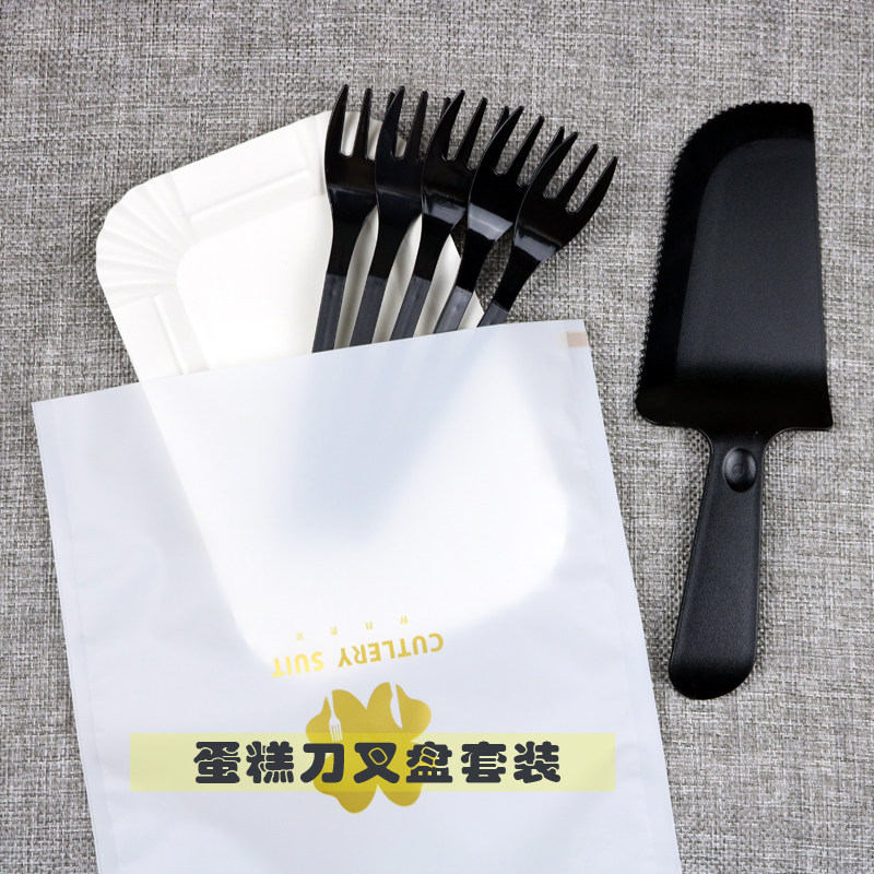 Cake knife and fork set for disposable knife and fork combined black thickening plate birthday cake tableware wholesale