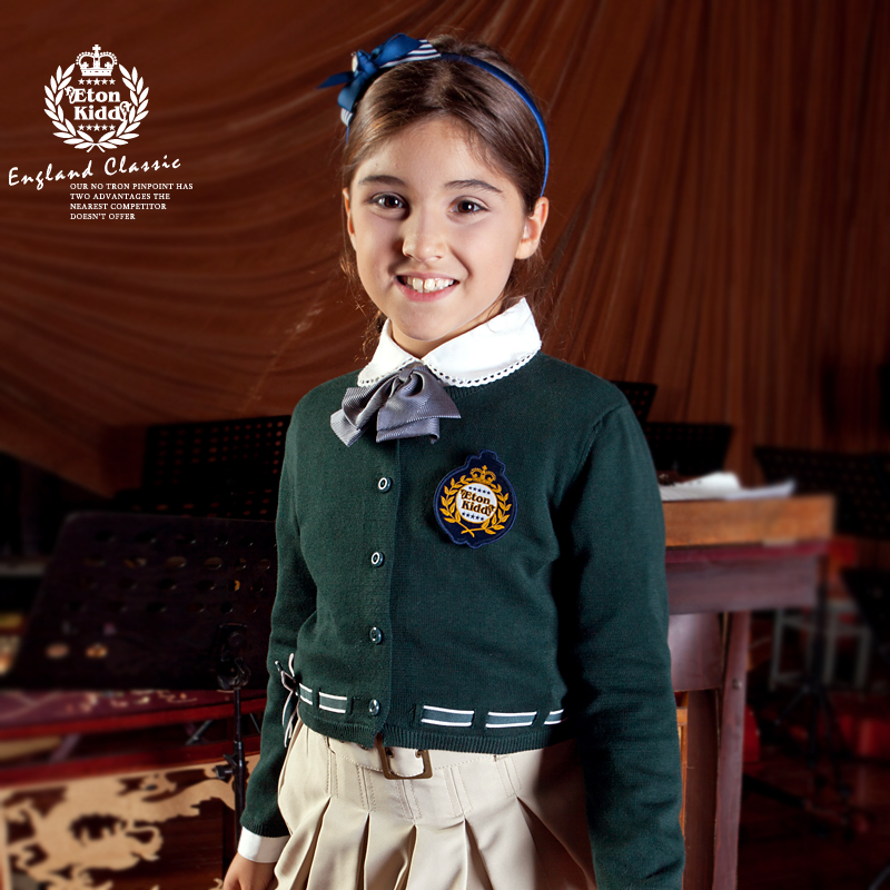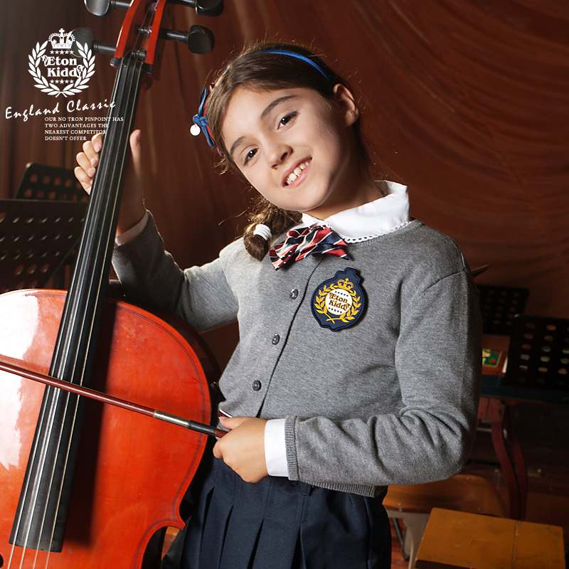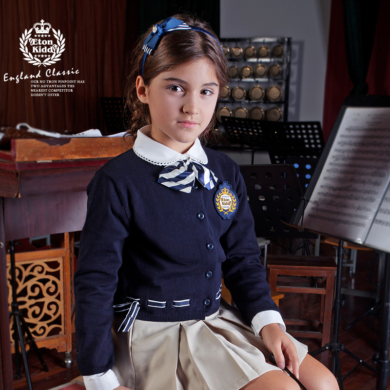 Eaton Gide school uniform primary and secondary school students girls navy blue light gray knitted cardigan jacket autumn thin bow ribbon