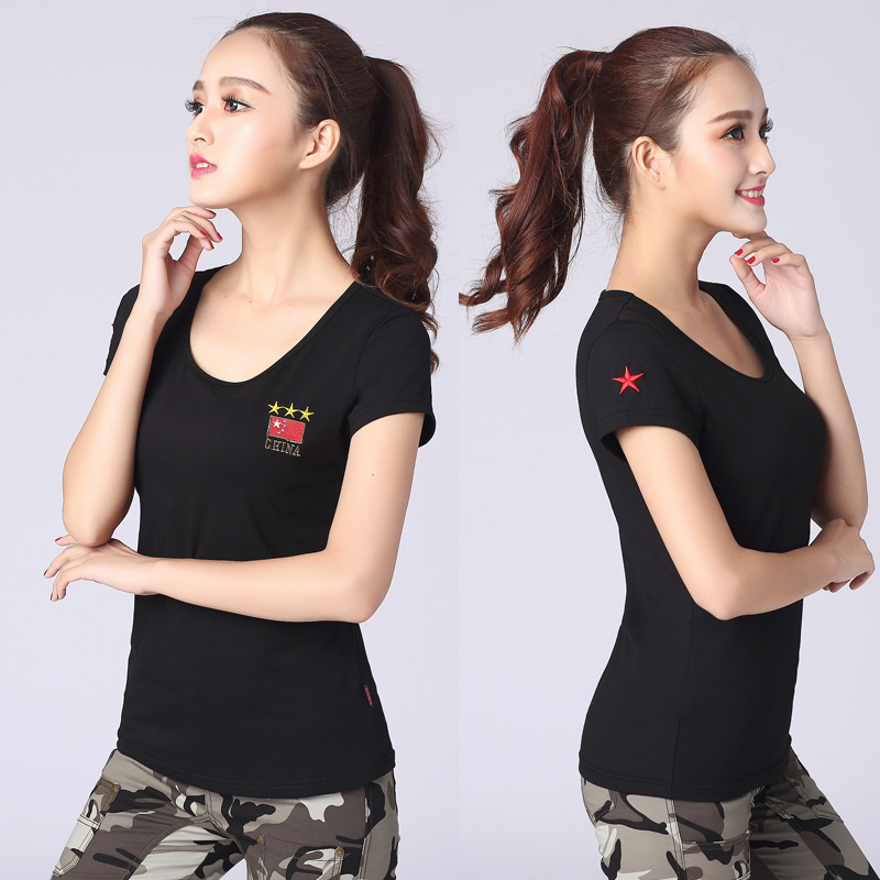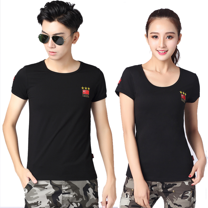 Outdoor sashimi T-shirt male and female round collar army fan short sleeve blouse summer black water soldier dance dress uniform half sleeve pure cotton