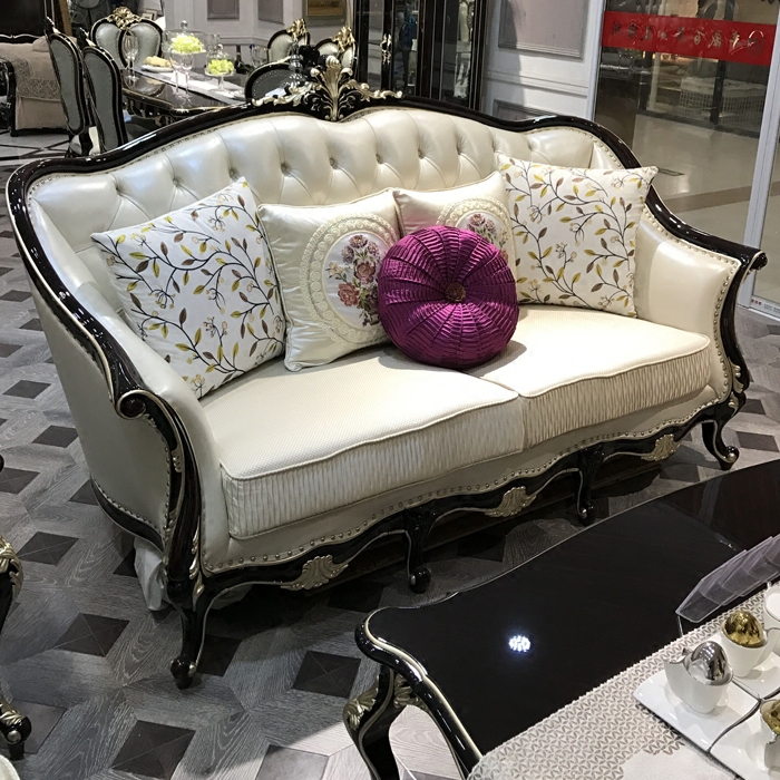 Eu Style Real Leather Sofa 123 Composition New Classical Like Board Room Solid Wood Sofa American Small Family Style Living Room Sofa