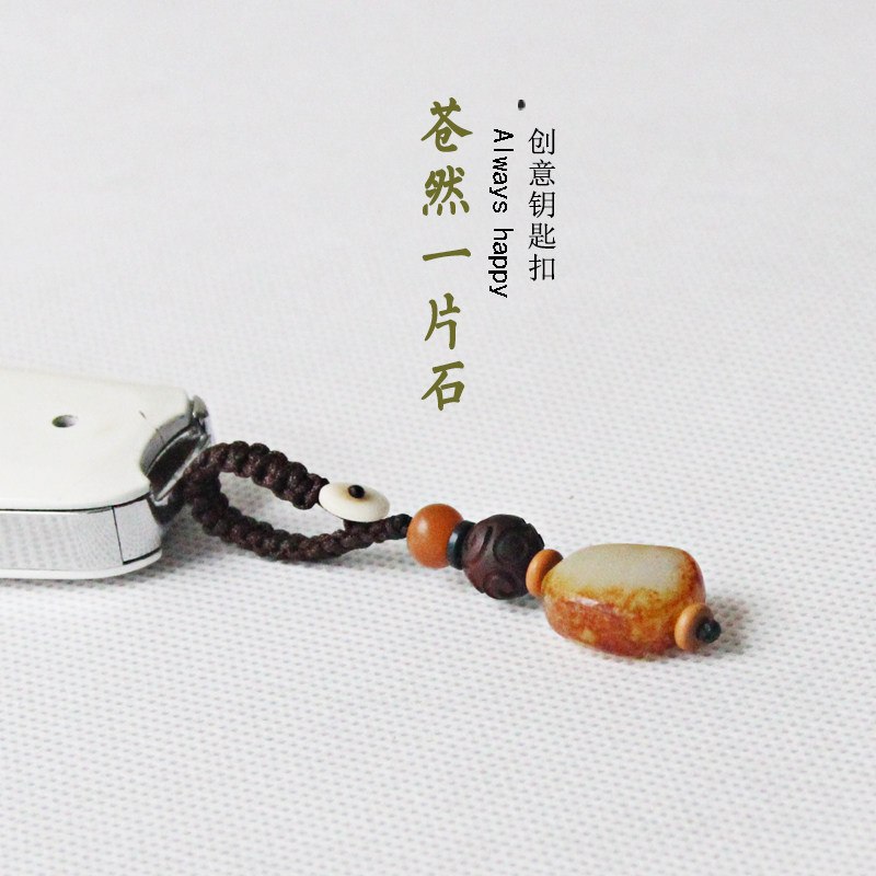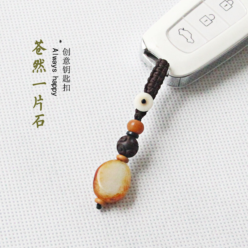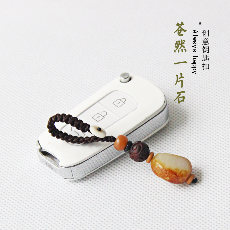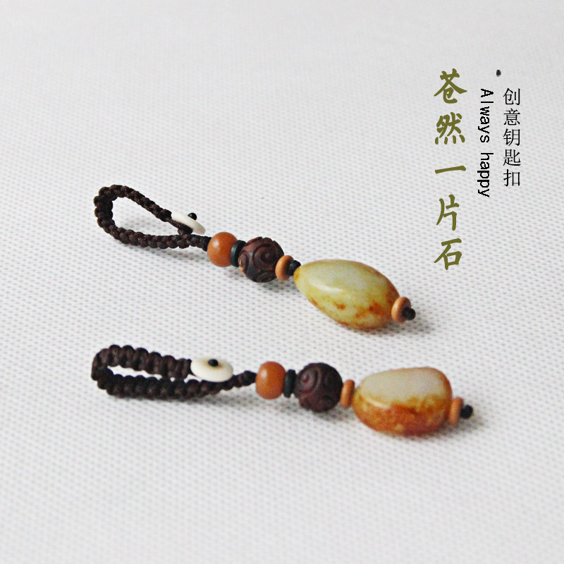High - grade simple retro and jade raw stone material security key buckle hanging piece hanging piece