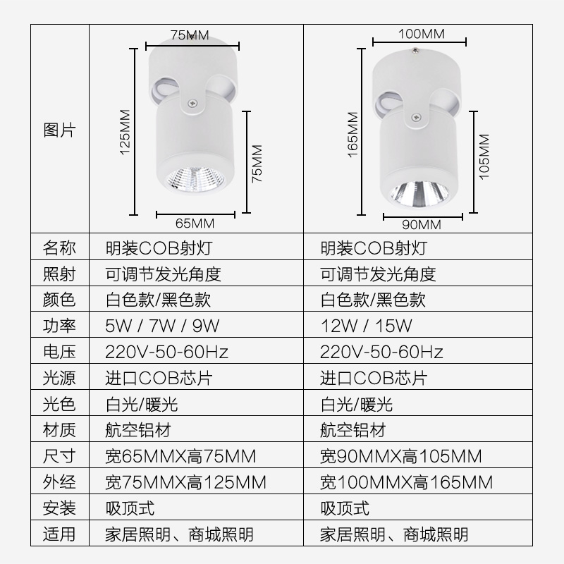 COB core 5 watt-white light COB core 5 watt-warm COB core 5 watt-neutral light COB core 9 watt-white light COB core 9 watt-warm COB core 9 watt-neutral light COB core