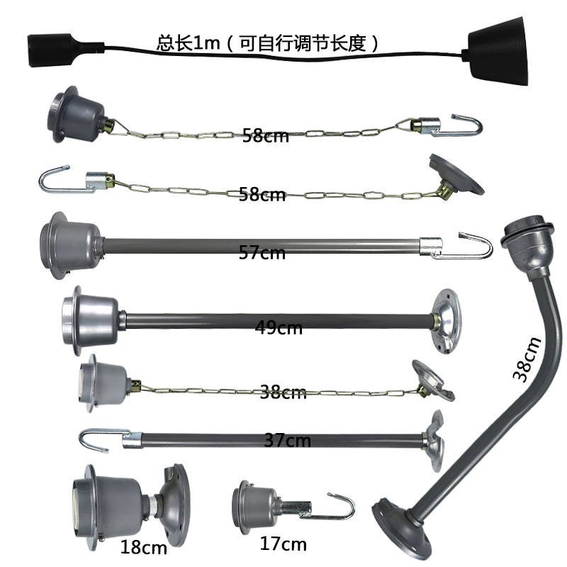 Ceiling industrial and mining lamp holder E27 0 5 m boom E27 lamp holder 0 7 m boom E27 lamp holder 1 m boom E27 lamp holder 0 3 m waterproof bent pole E27