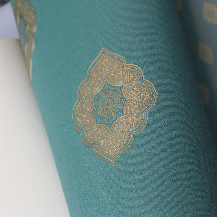 Blue-green European embossed flower wallpaper Personality court style small leather study chess room fitting room wallpaper
