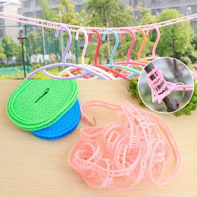 Windproof clothesline trapezoidal non-slip clothesline 5 meters with hook random color