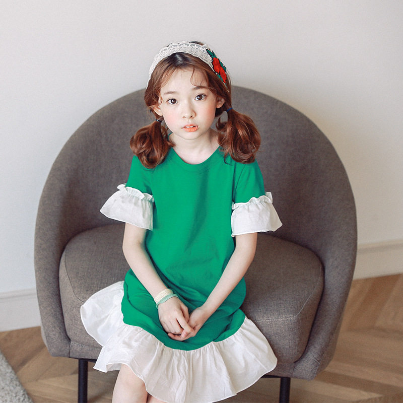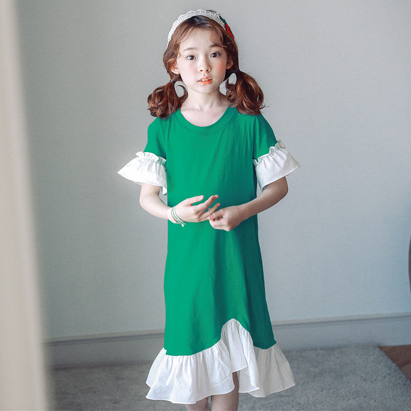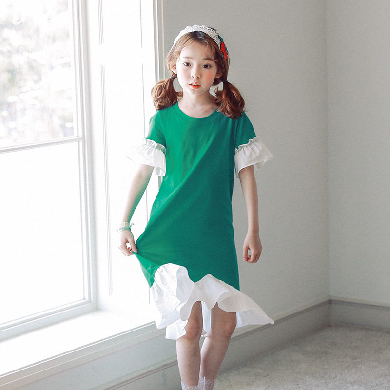 2021 summer new Korean version of girls hem ruffle lace dress children's middle and large children fresh fishtail skirt