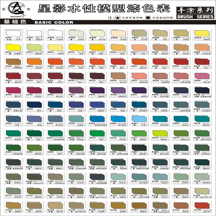 X073 Matting Garden Green X074 Intermediate Green X075 Light Green X076 Sky Green X077 Lyme Green X078 Yellow Green X079 Olive Gold X080 Glossy German Pseudo