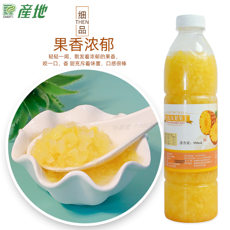 Origin frozen fresh diced pineapple juice with pulp particles Milk tea shop hot selling raw fresh juice 950ml