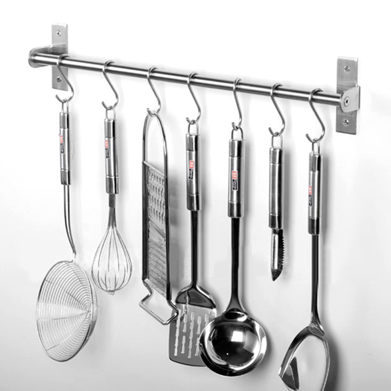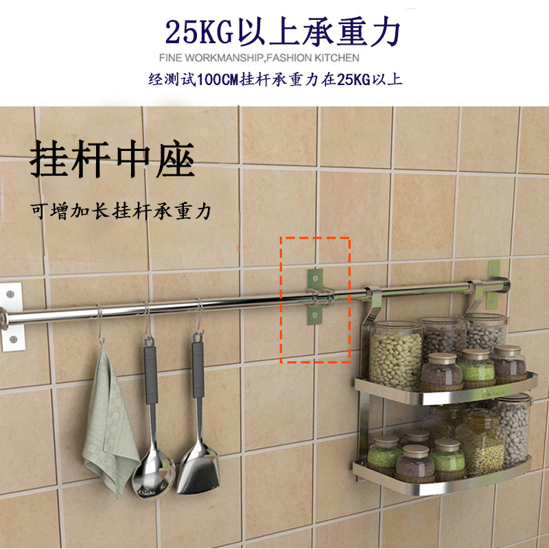 Kitchen wall hanging rod 304 stainless steel multifunctional kitchen supplies storage rod without punching length can be customized