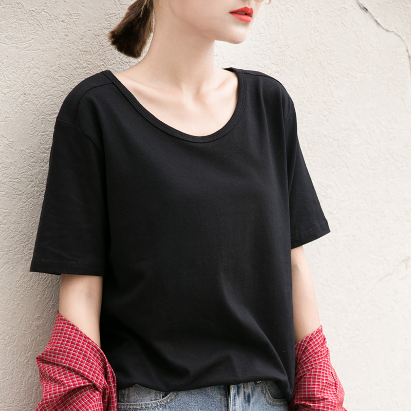 2022 summer short-sleeved black T-shirt women's loose simple cotton large size women's Korean version solid color top T-shirt trend