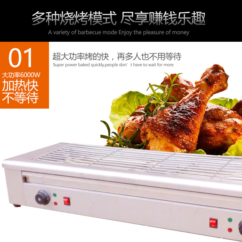 Commercial barbecue stove electric heating stainless steel meat stove large kebab stove grilled fish grill