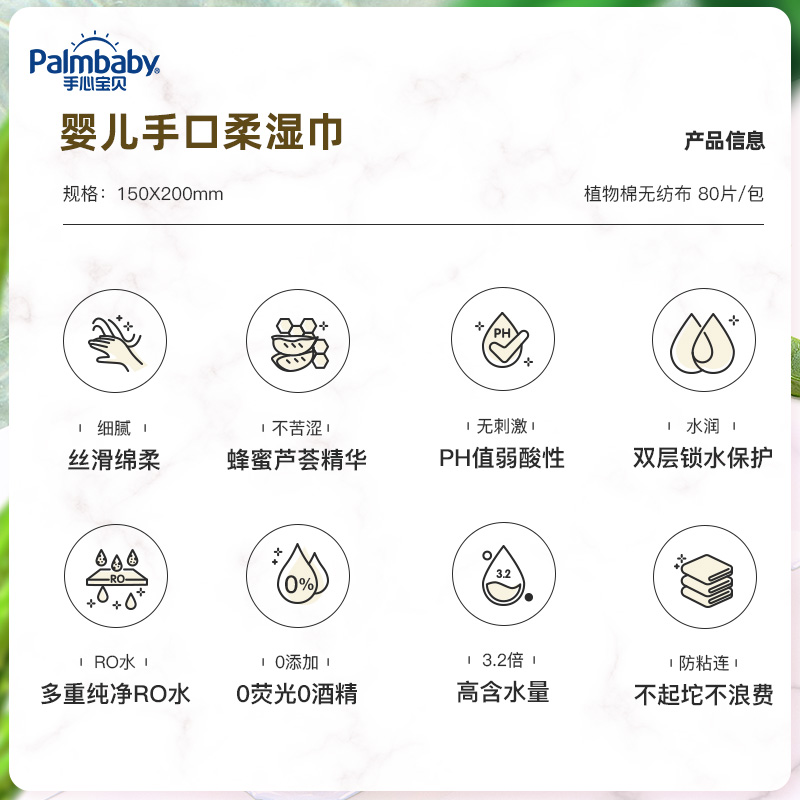 Palm baby Baby hand and mouth wipes Baby cotton soft wipes Newborn baby wet wipes 80 pumping*10 packs