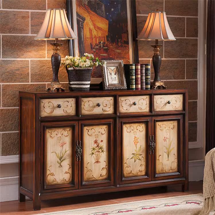 American Vintage Color Painting Xuanguan Cabinet Shoes Cabinet Real Wood Door Hall Door Hall Cabinet Mediterranean Neoclassical Bedroom Containing Cabinet Large Shoe Cabinet