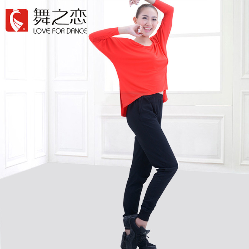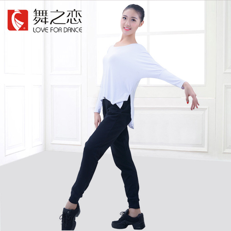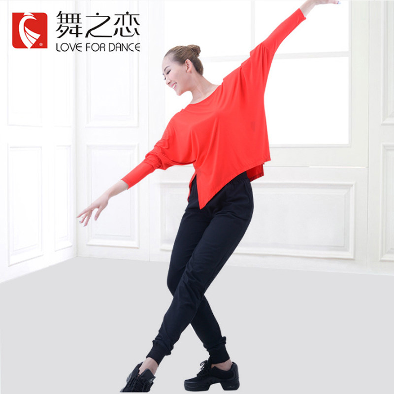 Dance love female adult spring and summer long sleeve dance loose casual practice top Square dance top Modern dance suit