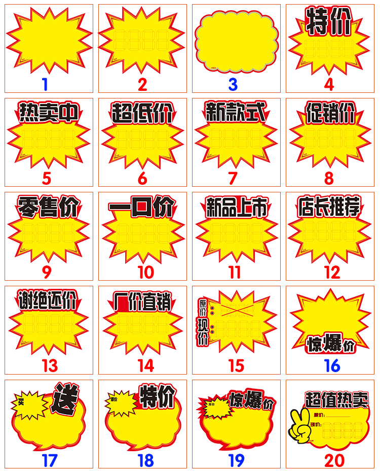 Large explosion sticker POP advertising paper promotion card commodity price card mother and baby label money hand-painted blank innovation