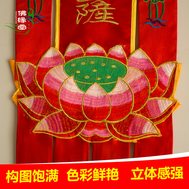 Buddha hall decoration Buddha banner cloth banner small hanging banner 1.5 meters tide embroidered red flag prayer flag vertical banner long banner custom