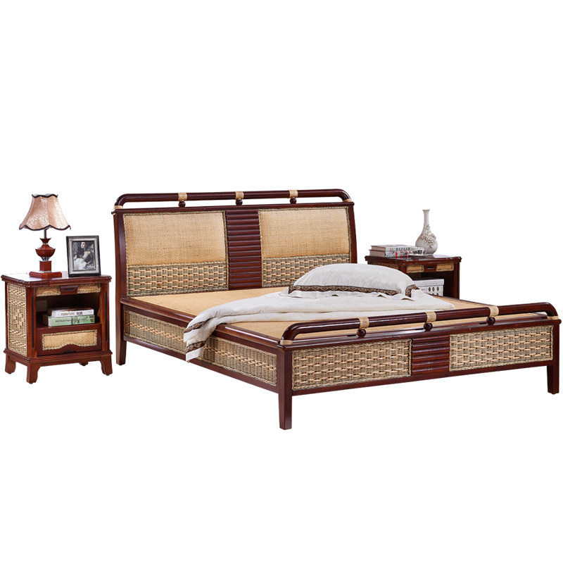 Rattan bed Rattan bed 1 5 meters 1 8 household woven real rattan solid wood double bed Southeast Asian style furniture rattan bed