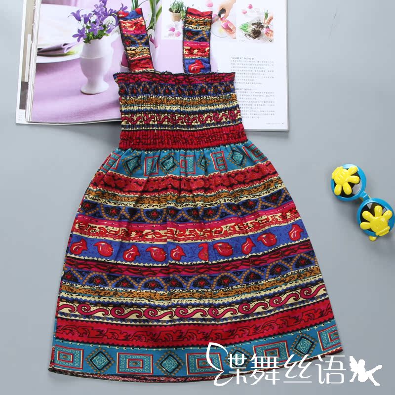 Cute girl tightness hanging band Skirt New Summer Children Cotton Hemp Harness Vest National Wind Dress