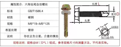 Hexagonal drill tail screw Color steel tile nail dovetail screw Self-drilling self-tapping drill tail screw M5 series